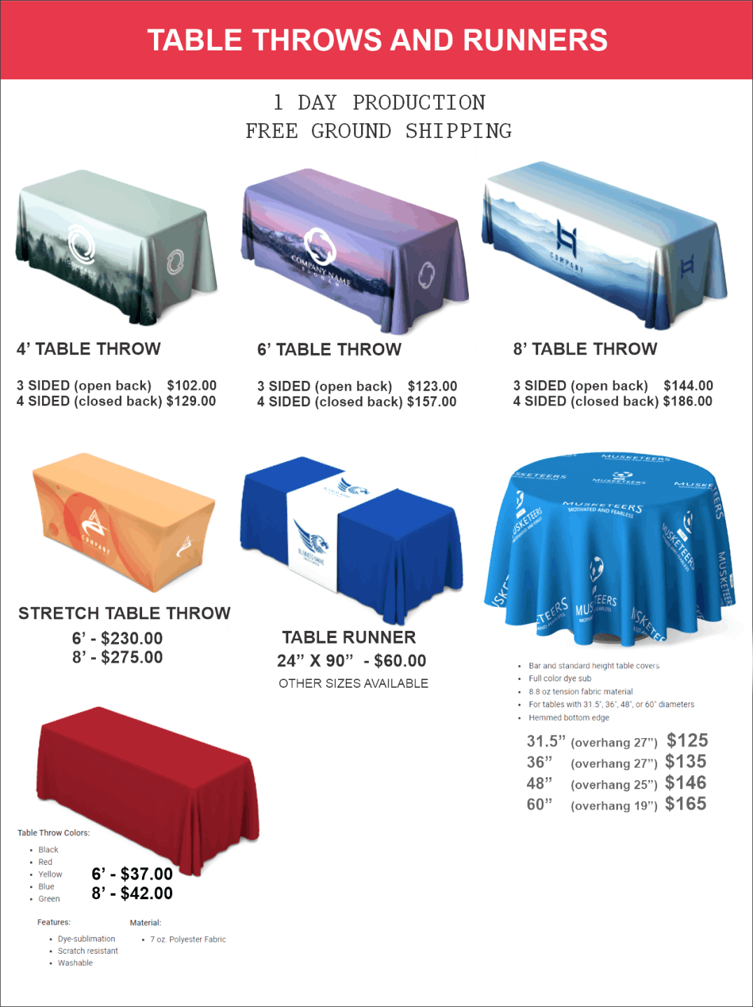 Promotional displays/ Table Coverings