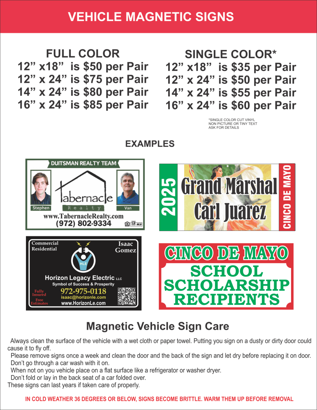 Vinyl signs / Magnetic Signs