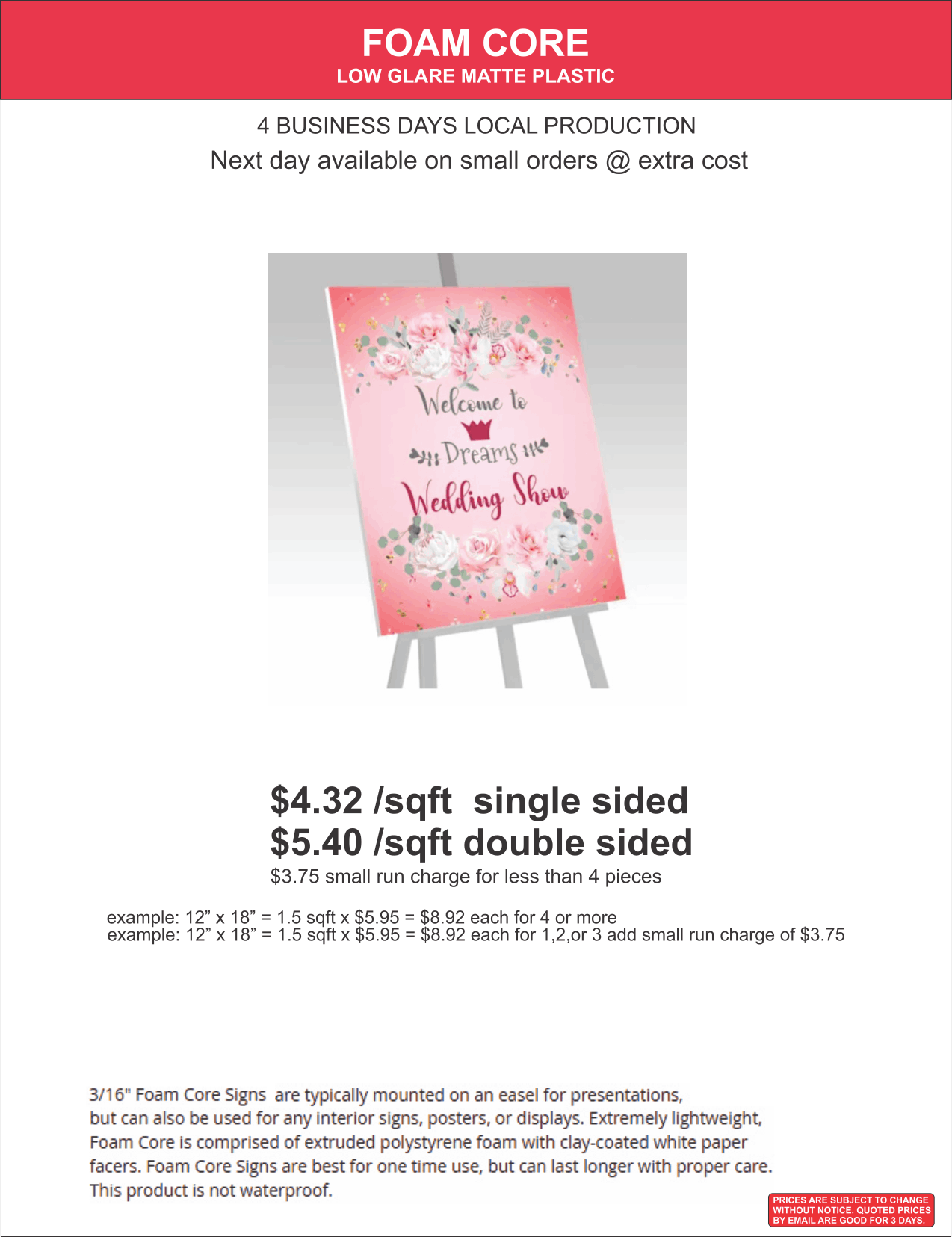 Note: Prices are subject to change without notice, quoted prices by email are good for 3 days.